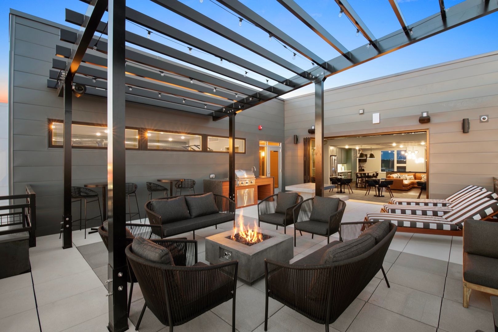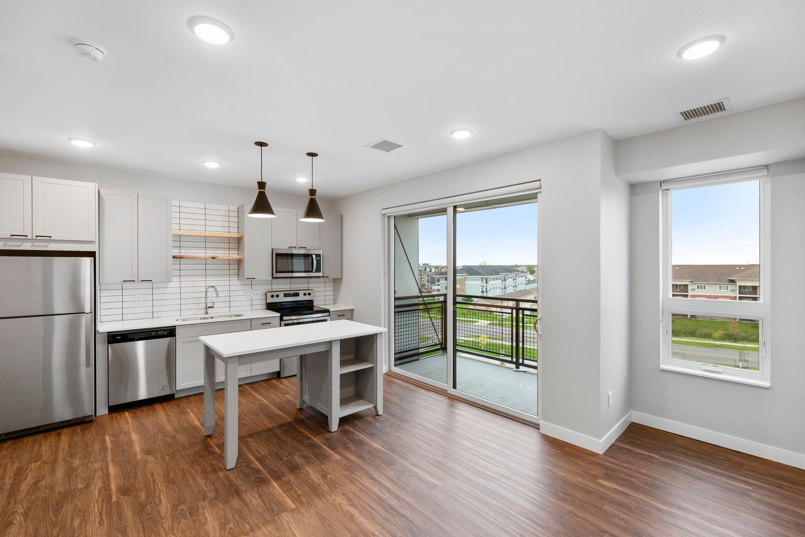 Enjoy luxurious features such as white quartz countertops, stainless steel appliances, large windows and tile backsplash. Entertain your guests in our clubroom, packed with awesome amenities. Walk out onto the rooftop deck and grill with your friends or sit by the fire and enjoy the beautiful view. Your experience at Uptown & Main also includes a pet spa, a fitness center and much more!