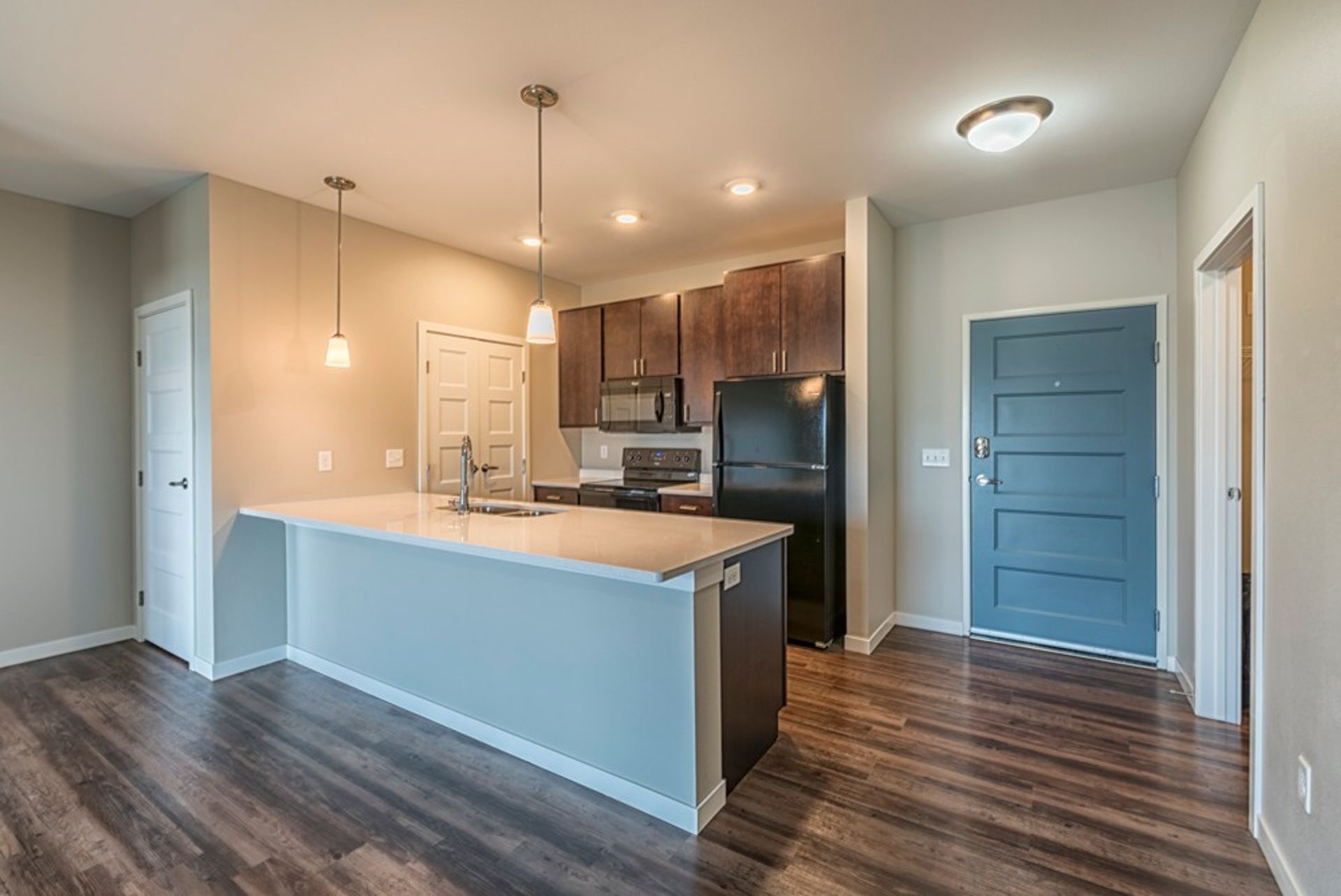 Encore Apartments feature spacious, modern interiors and a convenient South Fargo location. Amenities include a pet spa and fitness room. These pet-friendly apartments come with in unit washer/dryers, balconies, and detached garages. Visit The Encore rental office at 4955 30th Ave S, Fargo, ND or give us a call at (701) 929-5268!